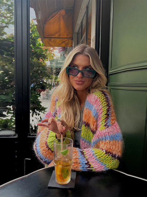 Damen Regenbogen Pullover Bunt gestrickt Pullover