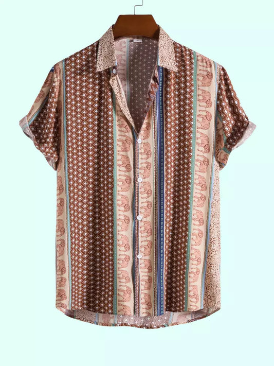 Elefantenhemd mit geometrischem Druck und strukturierter Baumwolle