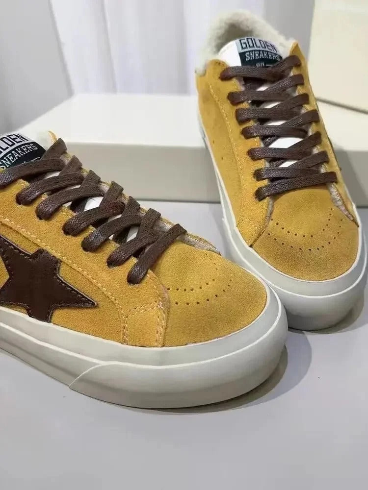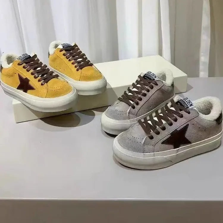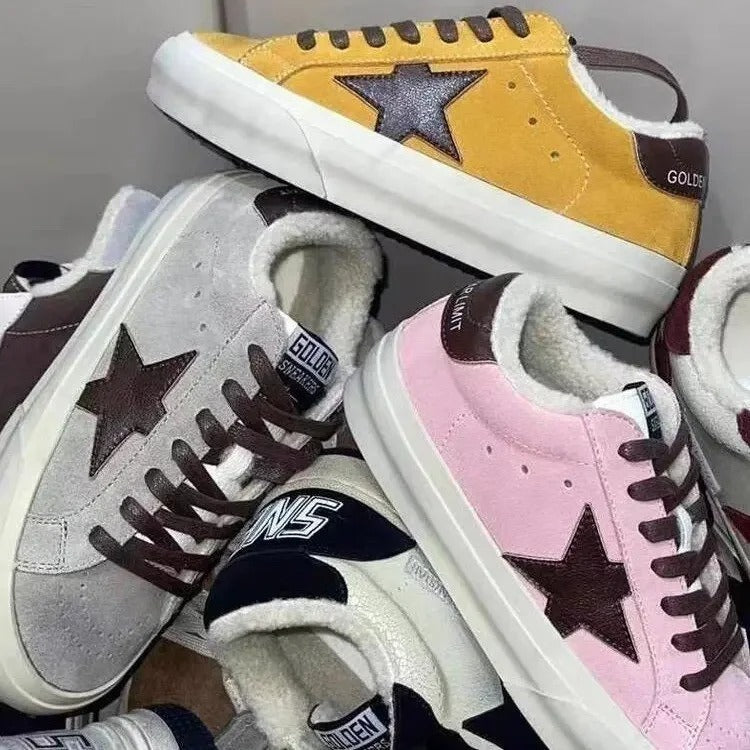 Wer sagt, dass man nicht Stil und Komfort haben kann? Die Distressed Fleece Lined Schuhe besitzen ein verspieltes, sternförmiges Design, das jedem Outfit eine charmante Note verleiht. Ob beim Erledigen von Besorgungen oder beim Treffen mit Freunden – diese flachen Schuhe verleihen deinem Look mühelos einen modernen koreanischen Flair.