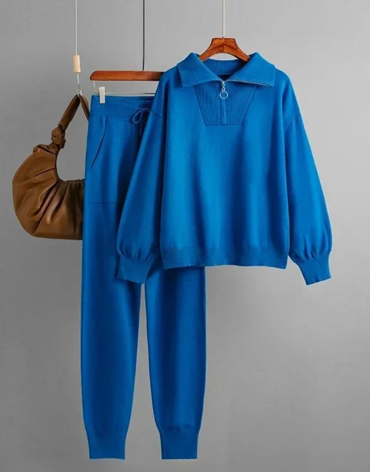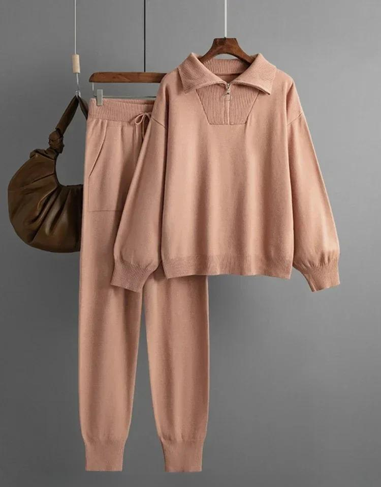 Warum auf Stil verzichten, wenn du beides haben kannst? Dieser stilvolle Strickanzug ist ideal für Tage, an denen du chic bleiben möchtest, ohne auf Komfort zu verzichten. Ob beim Joggen, Entspannen zu Hause oder Einkaufen – dieser Trainingsanzug wird dein Lieblingsoutfit.