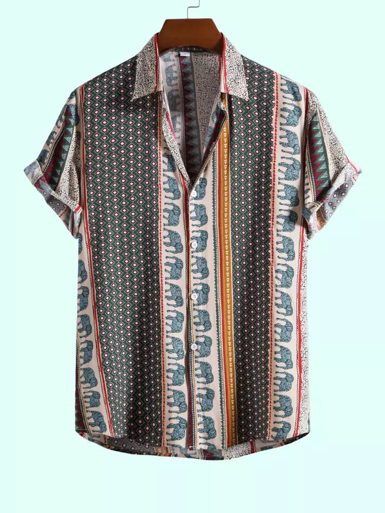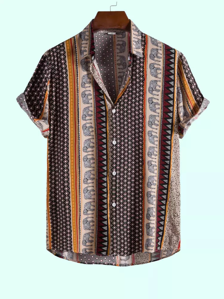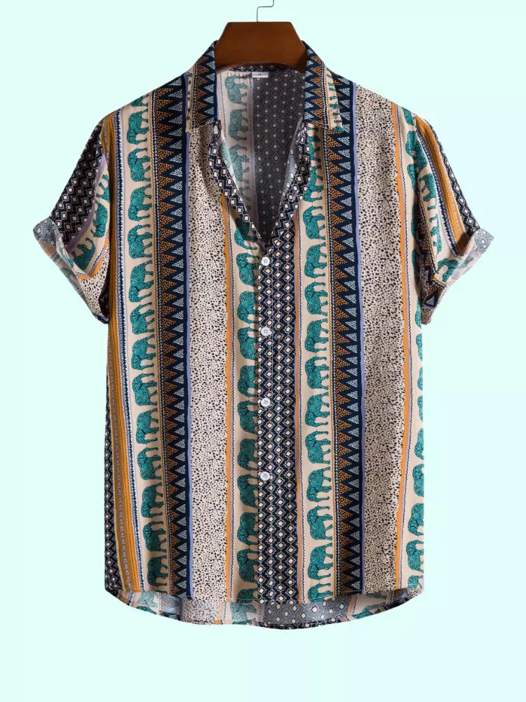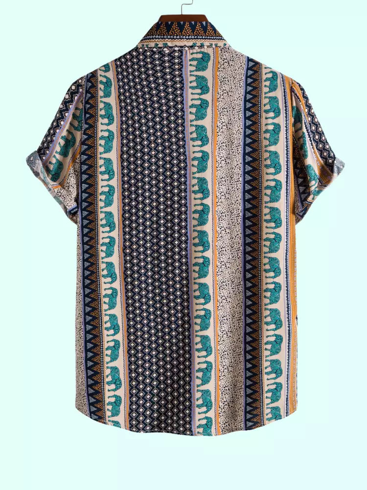 Elefantenhemd mit geometrischem Druck und strukturierter Baumwolle