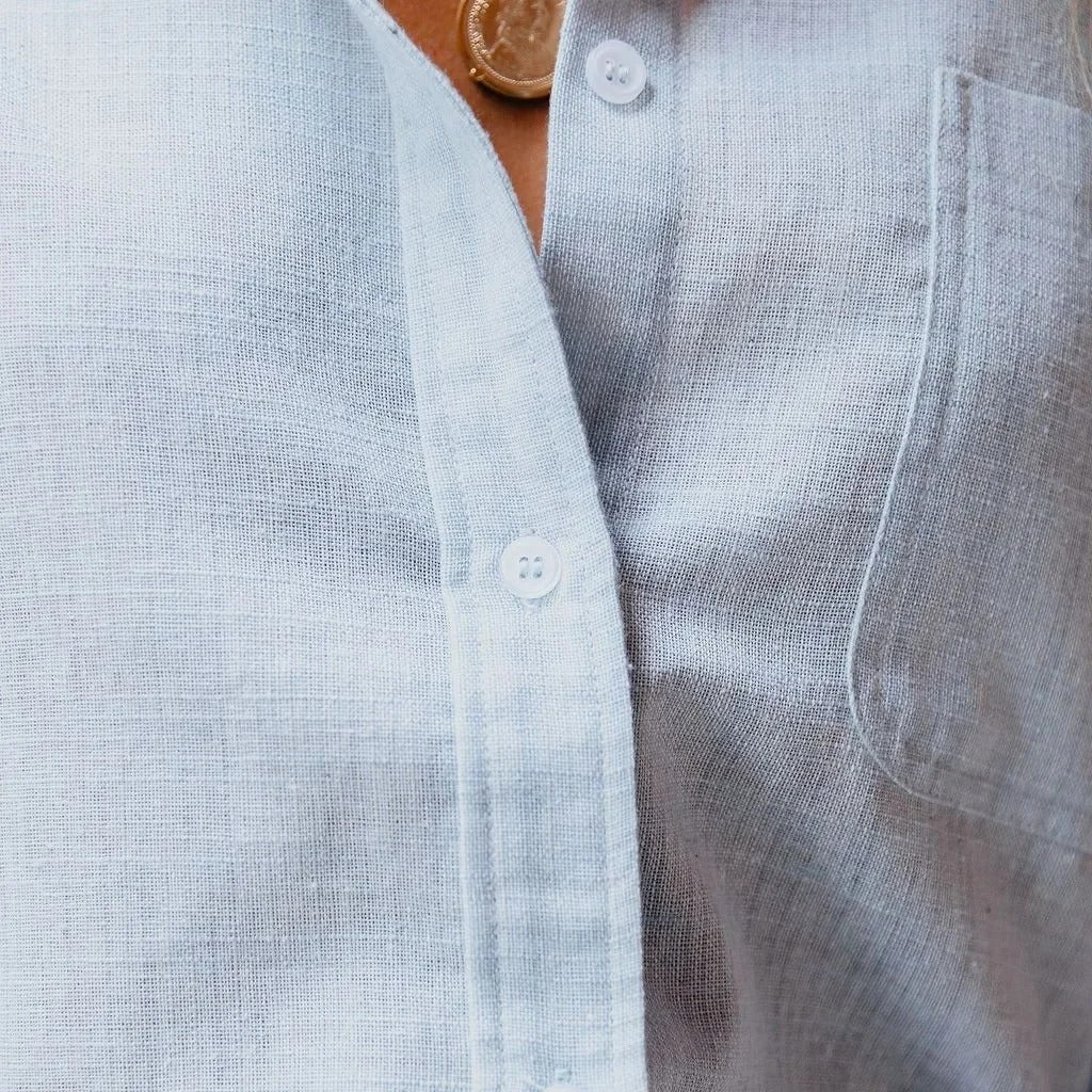 Gefertigt aus atmungsaktiver Baumwoll-Leinen-Mischung hält dich diese Bluse den ganzen Tag frisch, bequem und selbstbewusst. Der lockere Schnitt schmeichelt jeder Figur, während das leichte Material ideal für jede Jahreszeit ist. Schluss mit steifen Hemden – dieses passt sich dir an!
