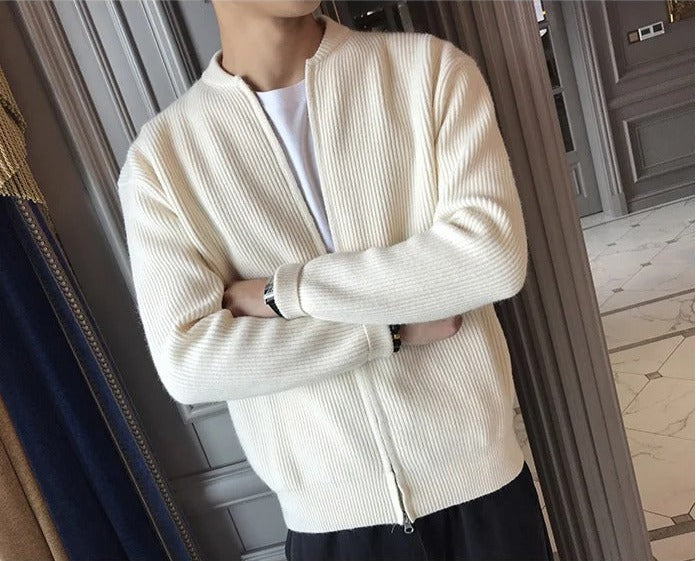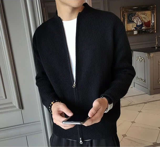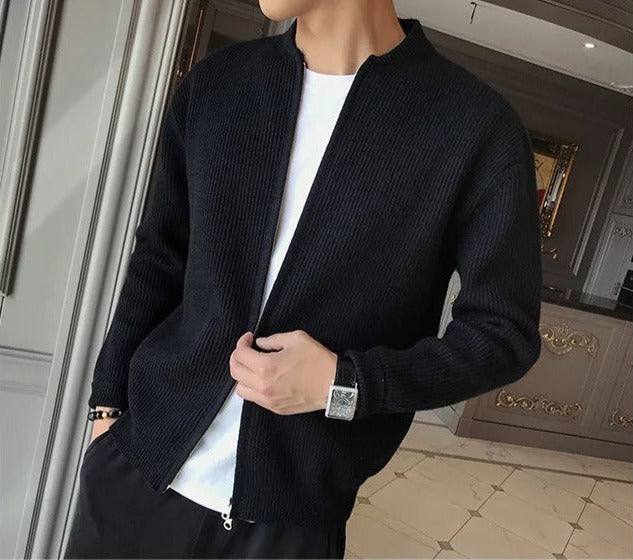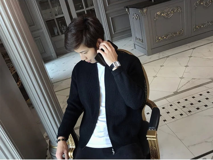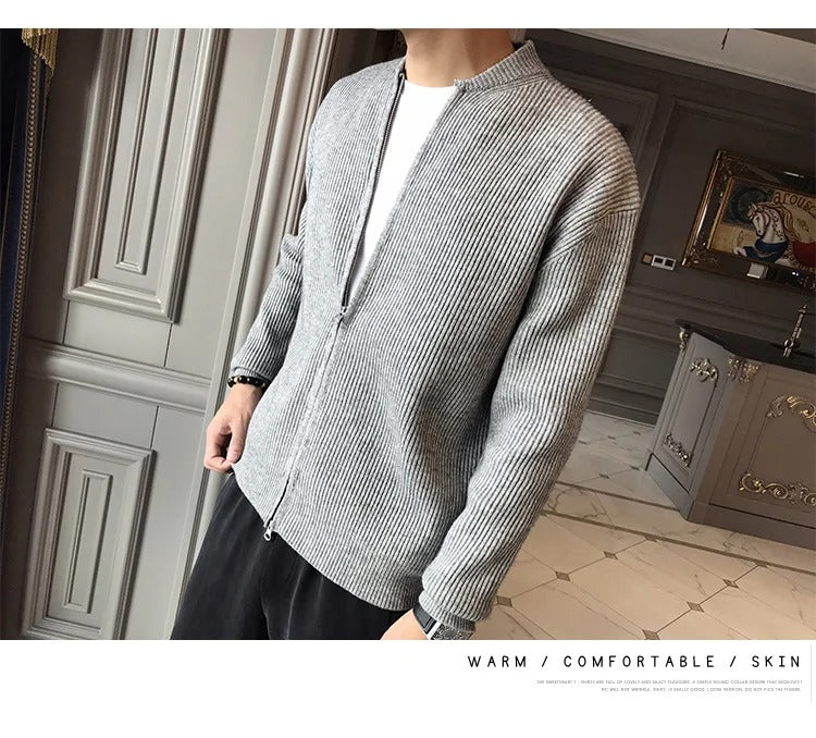 Genieße unseren "Gestrickte Strickjacke mit Reißverschluss", einen dicken, hautfreundlichen Mantel, der dich herrlich warm hält. Sein tröstlicher Griff geht nicht nur darum, die Kälte zu besiegen; es ist ein stilvolles Statement für den modernen Mann.